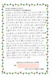 皆さんのお子さんに、ランドセルを支援してきた事に対するお礼、という事で